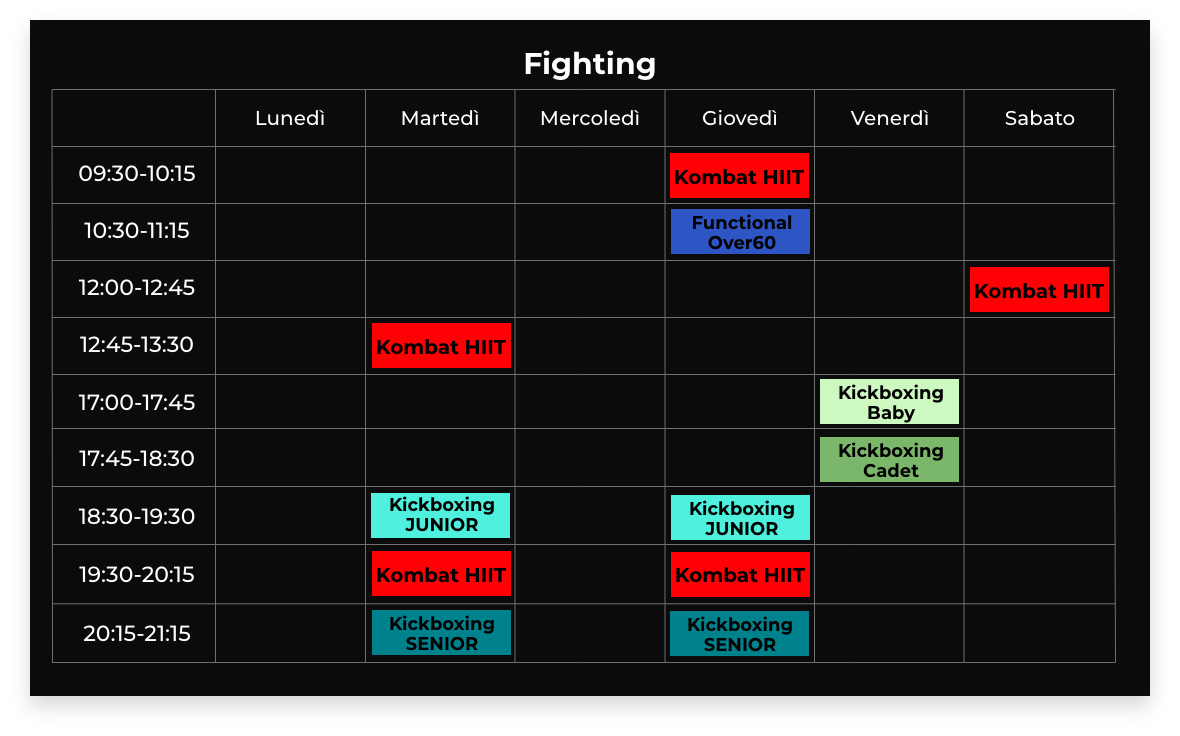 Le classi sono organizzate per permettere ai principianti di apprendere nuovi esercizi, allo stesso tempo gli avanzati potranno migliorare il gesto tecnico delle skill che già conoscono.